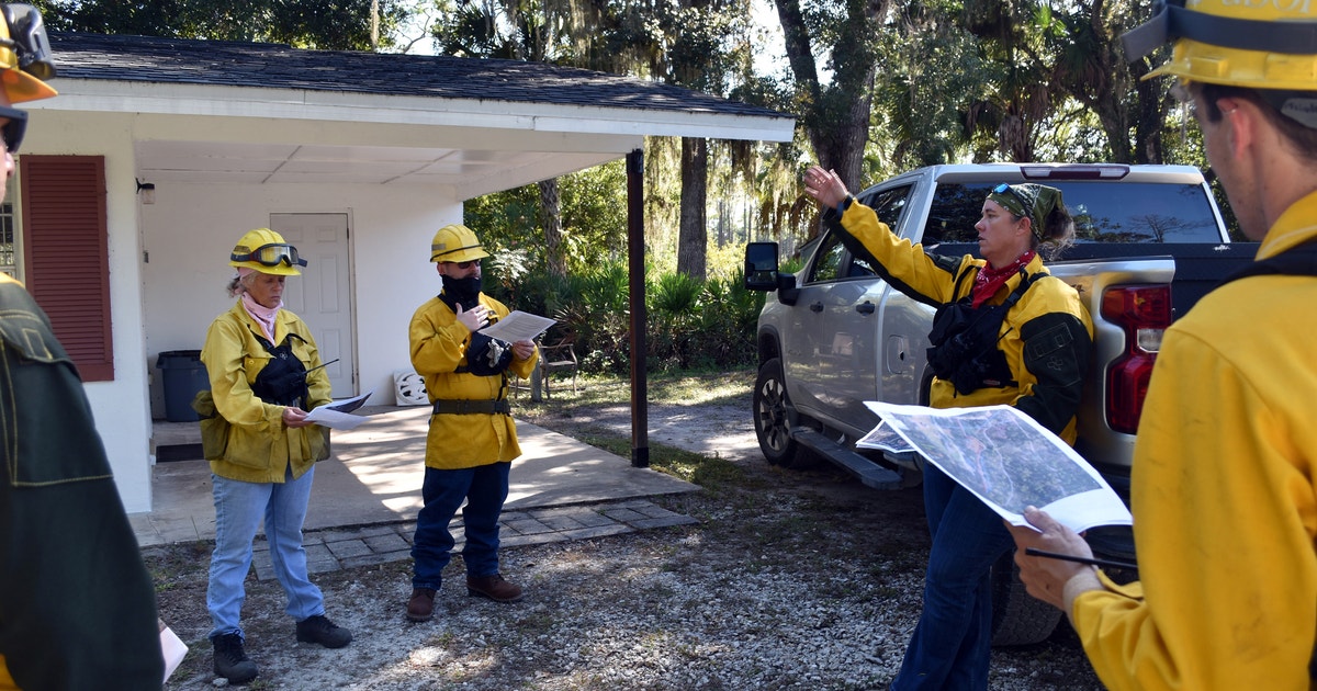 Webb has been a member of the land stewardship staff since 2007 and the Sanctuary’s program lead since 2015. Throughout this burn, her staff consists of employees and volunteers with various expertise: one volunteer has assisted with a number of fires whereas new staff members are nonetheless studying how hearth behaves round Florida’s flamable vegetation, akin to sabal palms, noticed palmettos, and wax myrtle. Webb explains each step alongside the best way—a profit for all concerned, together with the skilled employees from the fireplace division who’re nonetheless gaining expertise with wildland fires.