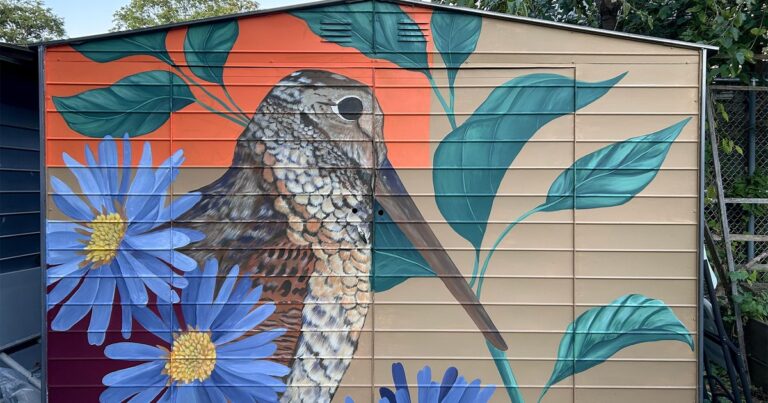 Concerning the Mural: On this mural by artist Majo San, an American Woodcock friends out from a panorama of native New England aster and grey dogwood. As a part of the Audubon Mural Project—a public-art initiative drawing consideration to birds which might be weak to extinction from local weather change—NYC Parks’ Artwork within the Parks program and NYC Parks GreenThumb labored with the Nationwide Audubon Society, Gitler &_____ Gallery, and native artists to design murals in group gardens throughout town. By way of a collaborative course of between the companions, artist, and backyard group, every mural was designed to function climate-threatened birds in addition to native plants that birds depend on for meals and shelter. By creating vibrant city inexperienced areas, group gardeners present important assist for birds and other people. Discover extra murals from the collaboration here.