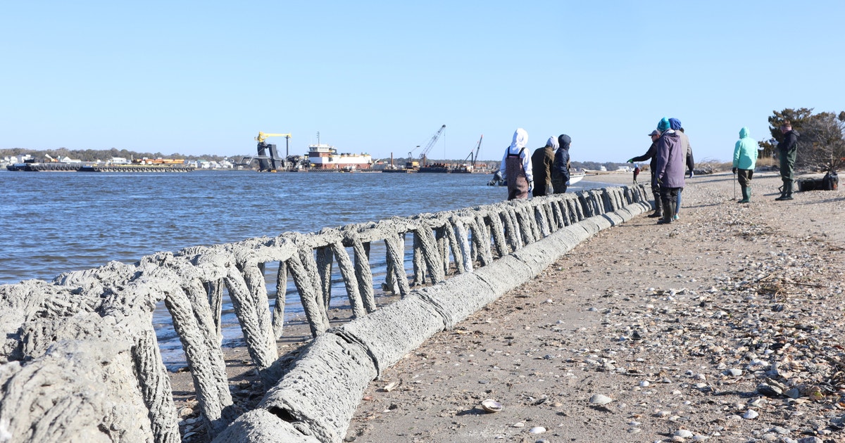 Audubon simply wrapped up set up of take a look at residing shoreline tasks on Battery and Shellbed Islands on the Decrease Cape Worry River due to assist from many companions, together with Cape Worry Audubon and the North Carolina Coastal Federation.