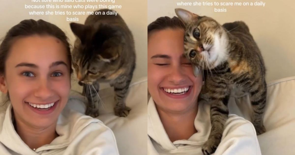 Cat Loves To Play Game Where She Tries To Scare Her Owner