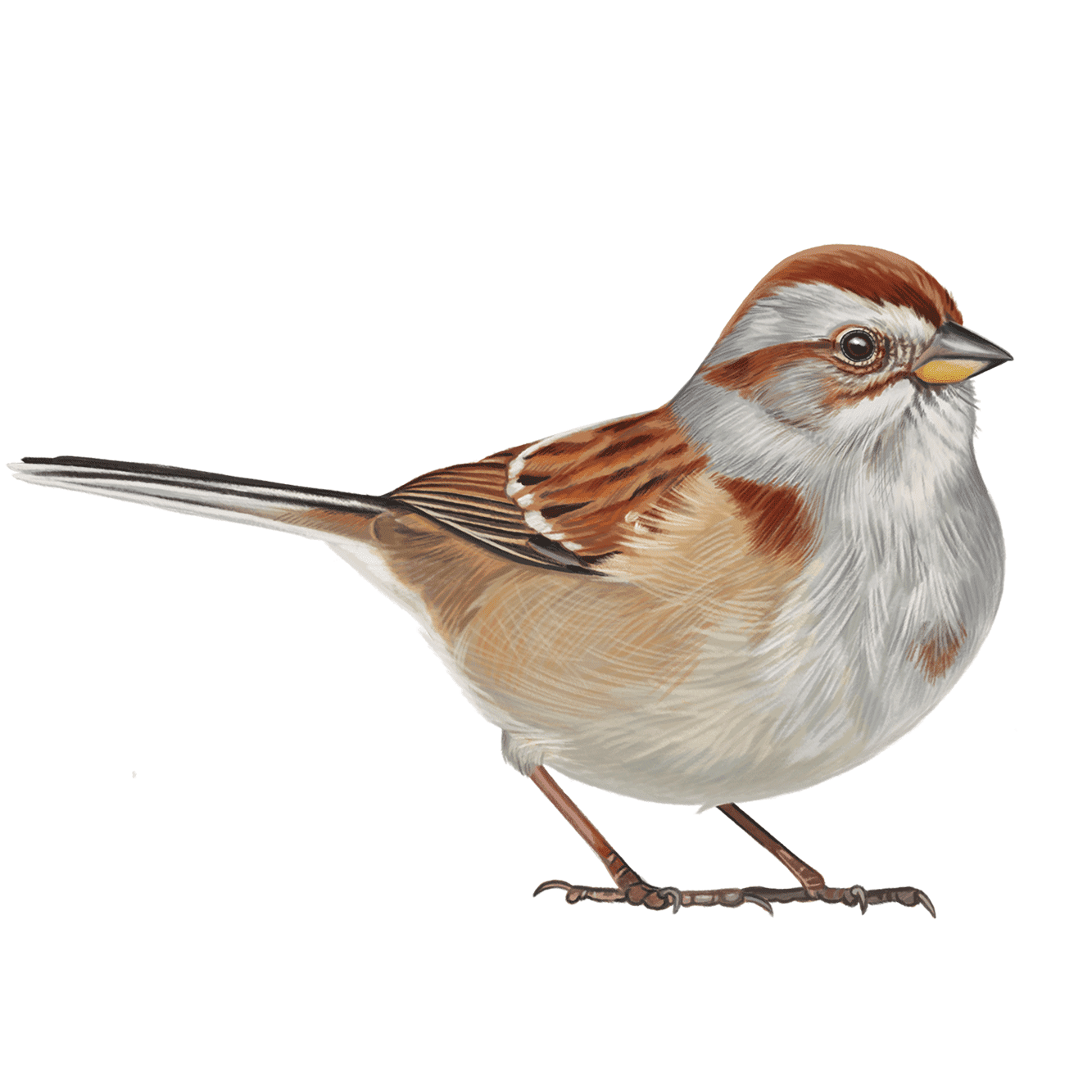 illustration of a reddish and grayish sparrow on a white background