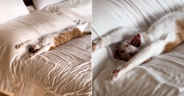 Cat’s huge stretch goes viral for a cause